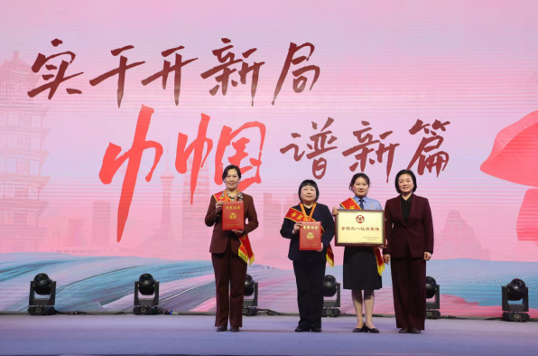 王丽出席郑州市举办的“实干开新局 巾帼谱新篇”——纪念“三八”国际妇女节主题活动,并为荣获2025年度全国三八红旗手的河南天马新材料股份有限公司董事长马淑云、郑州市第六高级中学党委书记董慧蕴和荣获全国三八红旗集体的郑州市中原区人民检察院第五检察部颁发奖章、证书和奖牌。